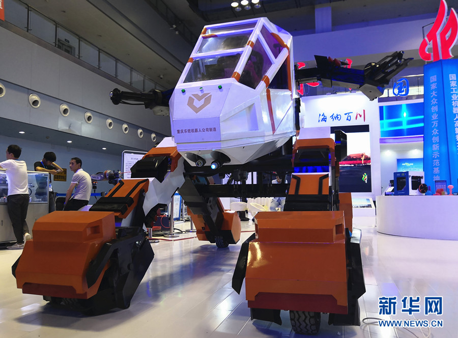 军博会现场,重庆科创职业学院的同学正在演示乐铠机器人,该机器人变形前高约4.7米,拥有机器人和汽车两种形态。人坐在机器人操作仓里面,不仅可以指挥机器人挥舞手臂,还可以操纵机器人“变身”为汽车形态前进后退,宛如现实版“变形金刚”。新华网 葛琦 摄