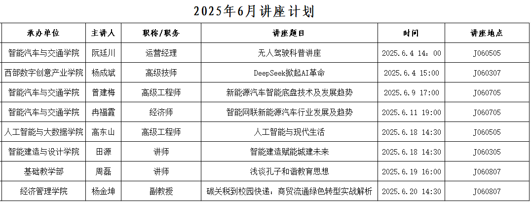 2025年6月讲座计划