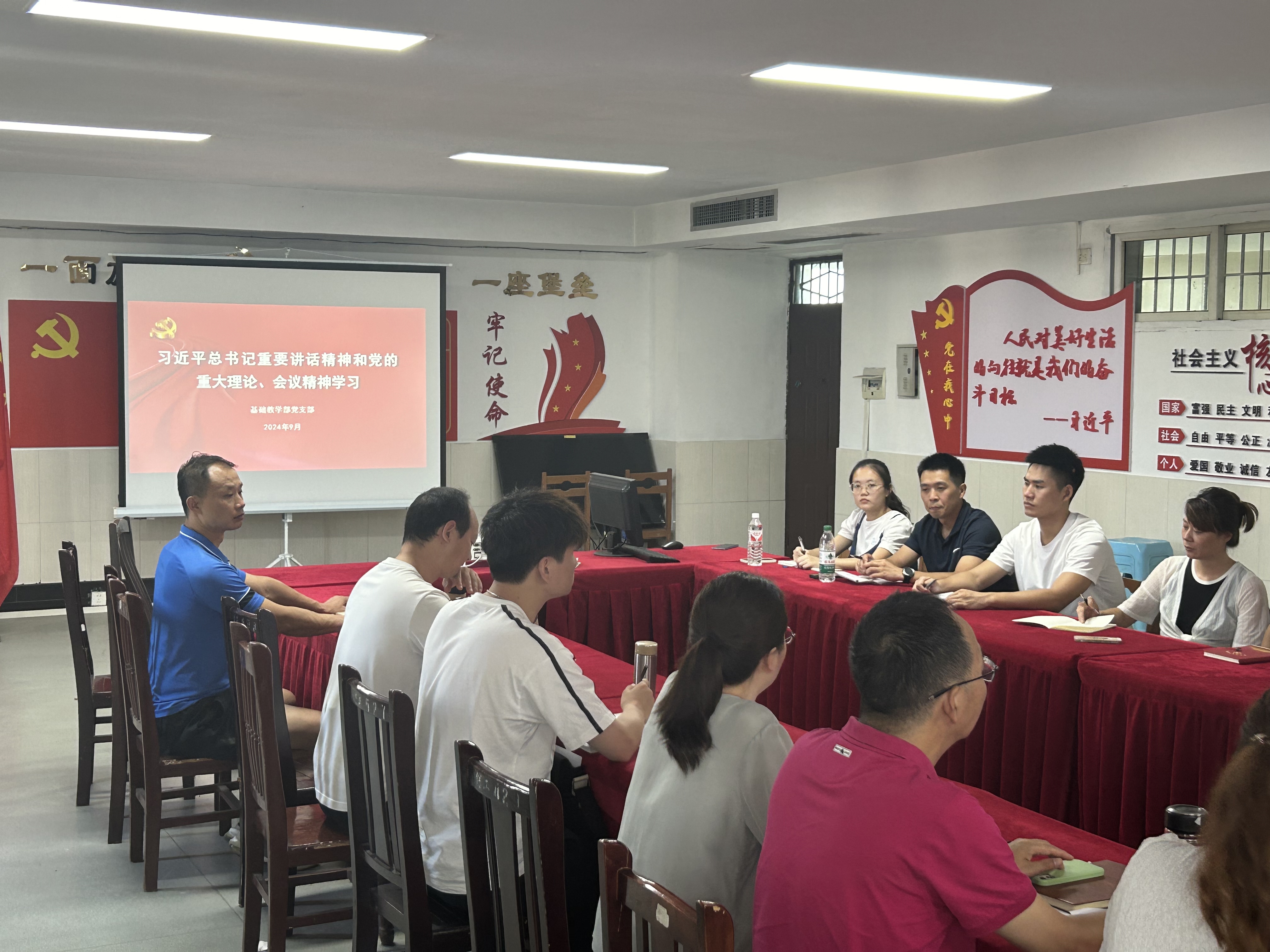 2024年9月9日下午,基础教学部党支部组织支部全体党员在科技楼1009基础教学部会议室集中学习了习近平主持召开中央全面深化改革委员会第六次会议的讲话,会议由支部书记罗明奎同志主持,支部全体党员参加了学习。