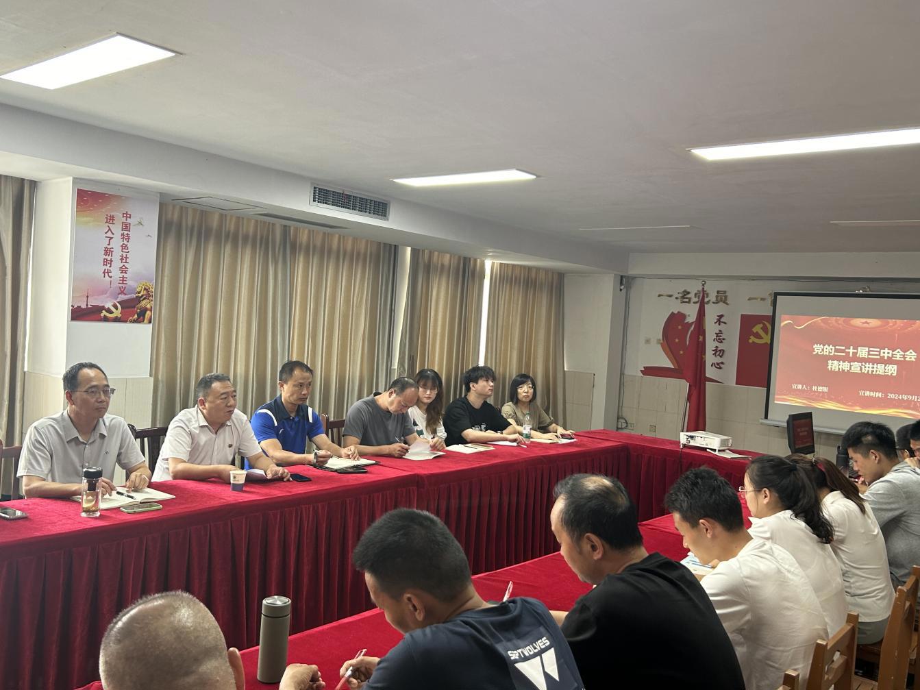校党委委员杜德银同志简要介绍了党的二十届三中全会的各项议程,并指出学习好贯彻好这次全会精神,是当前和今后一个时期全党全国的一项重大政治任务。杜德银同志从党的二十届三中全会的基本情况、党内外与国内外反映评价、筹备过程和习近平总书记在党的二十届三中全会上的重要讲话精神等方面做了细致讲解。