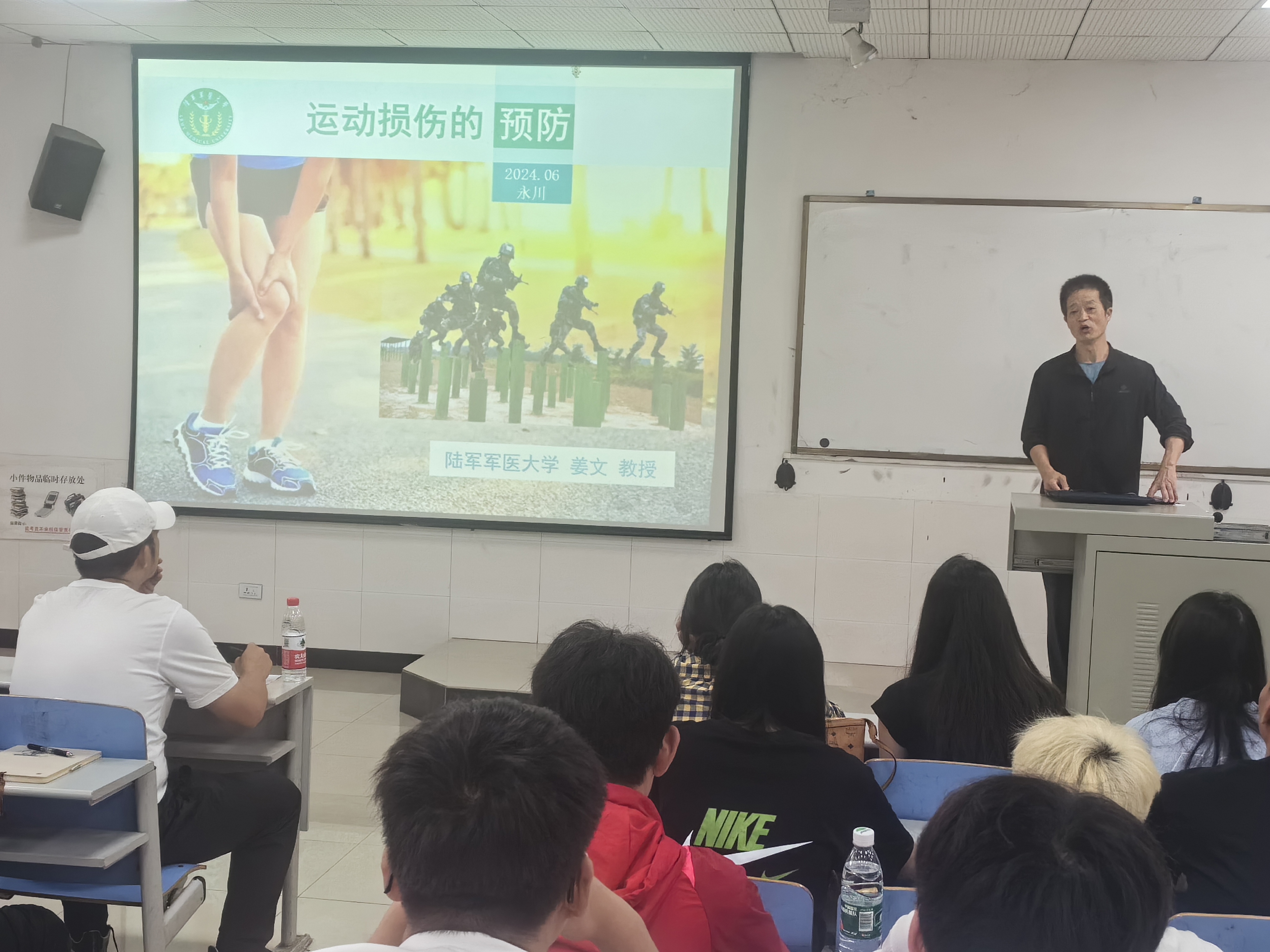 为有效预防训练损伤,进一步提高体育教师的业务能力以及校运动队的竞技水平。6月5日上午8点30分,基础教学部有幸邀请到陆军军医大学卫勤训练基地军事共同与部队管理教研室教授姜文教授,在理工楼305教室为全校体育教师和学校运动队全体队员进行了一场别开生面的学术讲座--《运动损伤的预防》。
