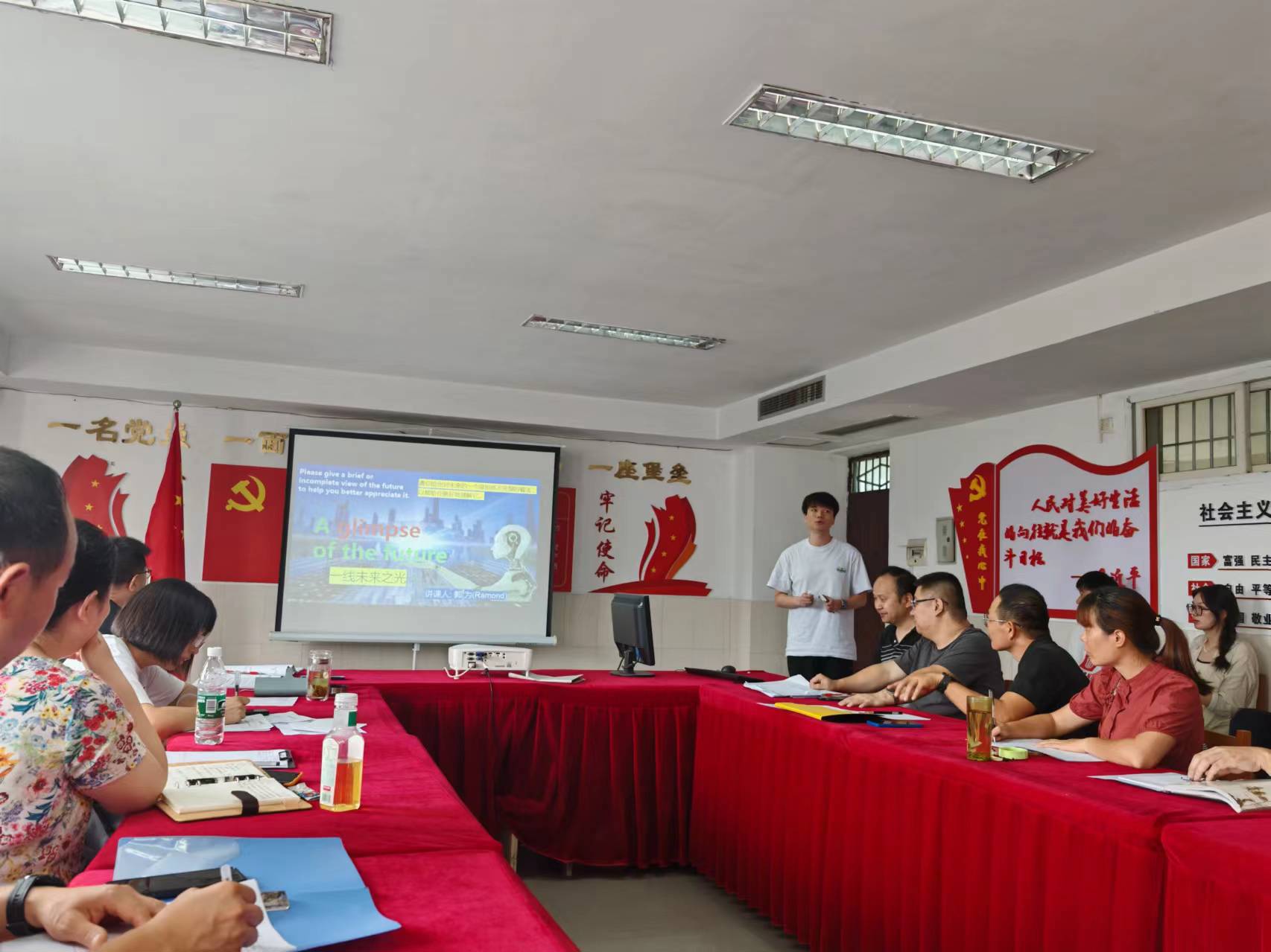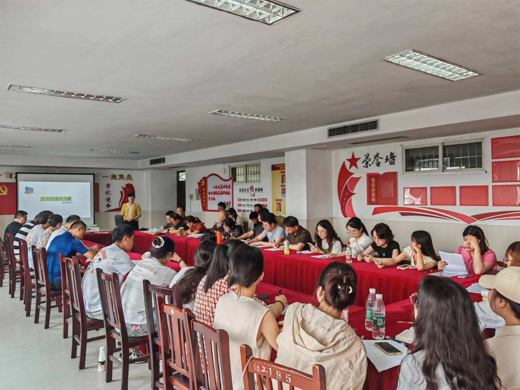 活动于7月3日下午14时30分在基础教学部副部长衡清芝的主持下拉开帷幕。首先数理教研室的徐健清老师从席位分配问题出发,构建了一个趋于相对公平数学模型,同时通过数学建模做到了思想的启迪。