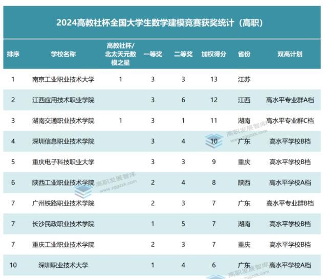 与此同时,高职发展智库发布了2024高教杯全国大学生数学建模竞赛获奖统计排名(高职),排名显示我校共获一等奖1项,二等奖2项,排名全国22位,重庆民办第1位!