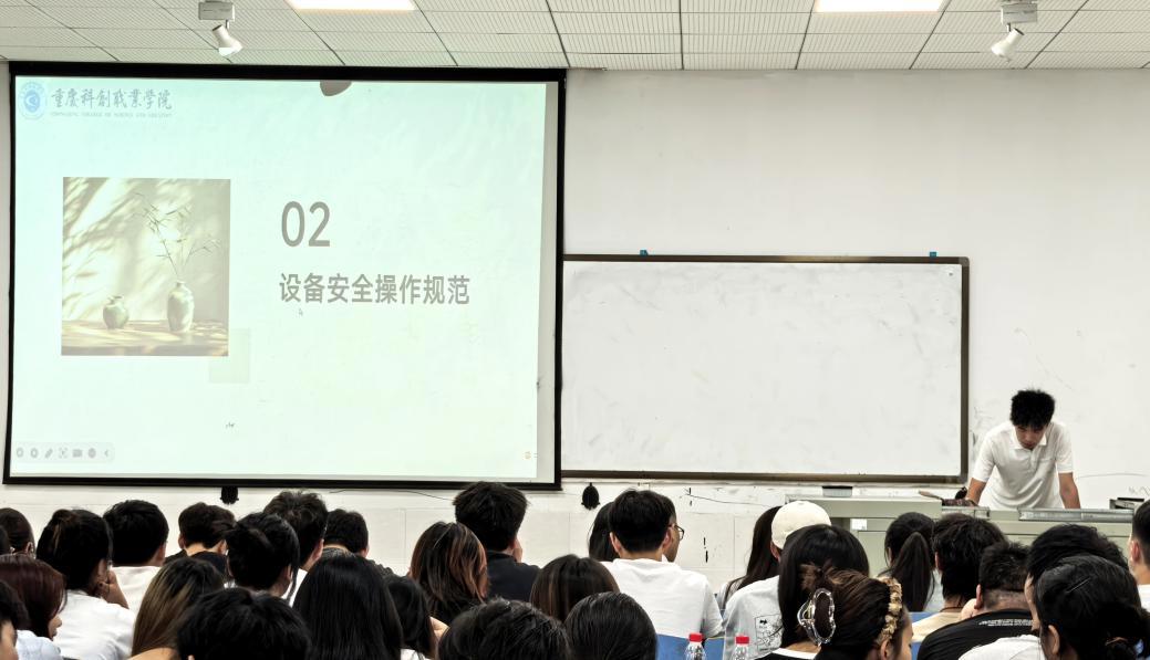 他结合《高等学校实验室安全规范》等文件,详细阐释学校实验室安全法律法规、管理制度及操作标准,重点说明个人防护用品选用规范和准入考核机制,明确“无培训不上岗、无防护不操作”的铁律。