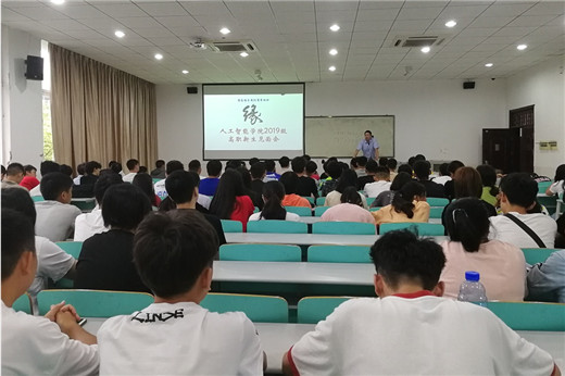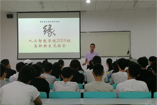 为了让2019级五年一贯制新生更好地了解自己所学专业,提高学生对专业知识学习的兴趣,尽快适应大学生活,9月1日下午,我校人工智能学院在理工楼6楼举办了新生专业宣讲暨新生见面会,学院领导、各专业负责人及企业专家出席了本次会议。