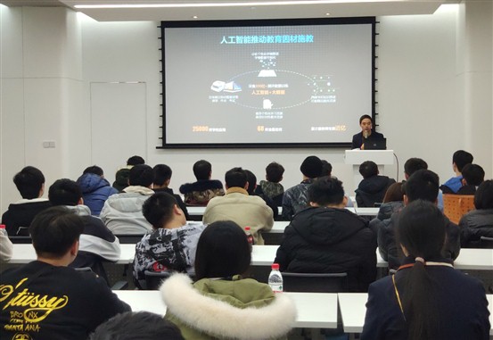 接着,学生们来到了二楼会议厅,科大讯飞西南研究院执行院长杨芳勋院长给学生们做了关于人工智能基本技术、产业发展方面的分享,介绍了我国人工智能发展里程碑、IT产业六次浪潮、人工智能的三次浪潮、脑科学等情况,提出“人工智能的无成本复制能力和持续向前进化能力是人类自身所无法比拟的”的观点。