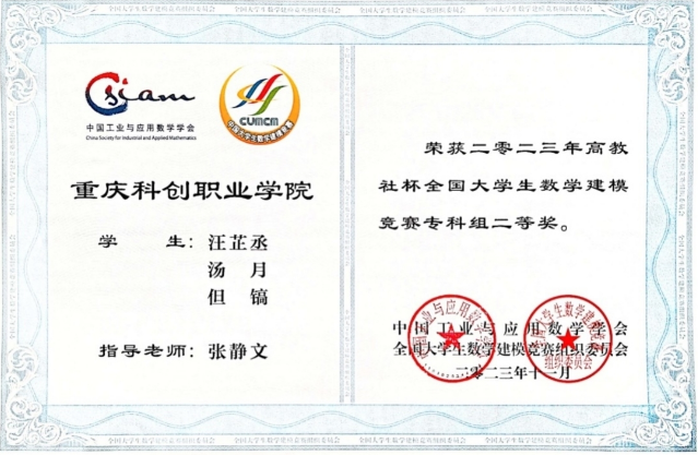 学生获得全国大学数学建模竞赛专科组二等奖
