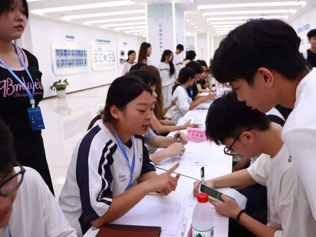 9月15日至16日,学院团总支、学生会在理工楼大厅举办线下招新面试。学生干部们热情接待每一位前来咨询的同学:为对“新媒体运营”感兴趣的同学演示公众号排版与视频剪辑技巧,向希望参与“校园文化活动”的同学介绍迎新晚会、学科竞赛等活动的组织流程,为纠结“选择哪个部门”的同学提供个性化建议。