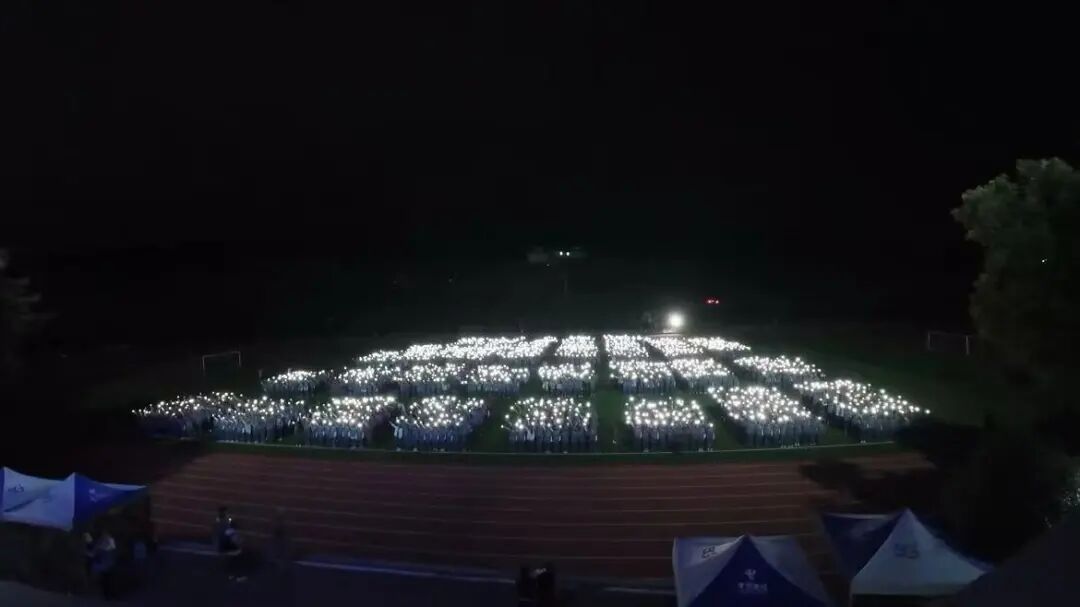 夜幕降临,训练场化身 “星光海洋”。同学们举起手机点亮手电筒,微光汇聚成璀璨灯海。伴着激昂旋律,嘹亮国歌穿透夜空,每一个音符都饱含赤诚,每一束光芒都映照着青春信仰。军训的疲惫被热忱驱散,迷彩服下的青春,在歌声与灯海中愈发耀眼动人。