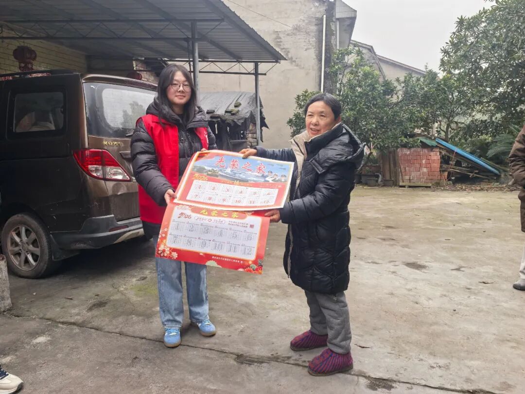 在家乡重庆市合川区三汇镇榆钱村积极参与“返家乡”志愿服务,用实际行动为乡邻送去温暖与关怀。在为退役军人家庭赠送“光荣之家”挂历活动中,她亲手将承载敬意的挂历送到老人手中,认真聆听军人家庭的报国故事,深切感受退役军人及家属的奉献与荣光。在“合心合力”三级楼院汇活动中,她协助村干部、交警为老年居民普及安全知识,维持现场秩序、发放宣传资料,耐心解答老人疑问,真切体会到基层服务扎根群众、连接人心的温暖力量。