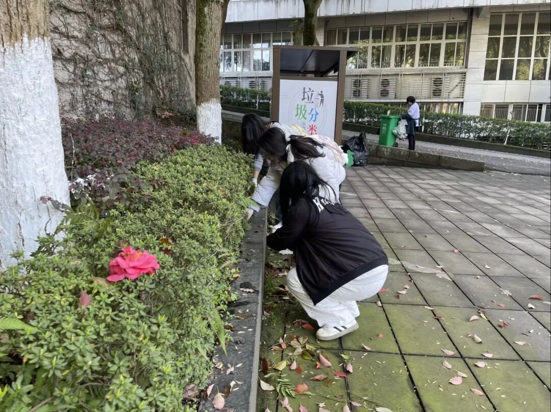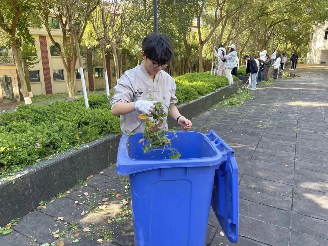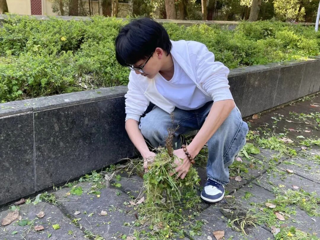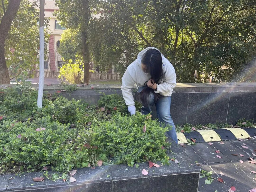 春日暖阳下,师生志愿者们分工协作、默契配合,不怕脏、不怕累,认真清理理工楼周边绿化带的杂草、杂物,细致整治每一处卫生死角。经过近 2 小时的辛勤劳作,绿化带内杂草被彻底清除,校园环境明显改善。