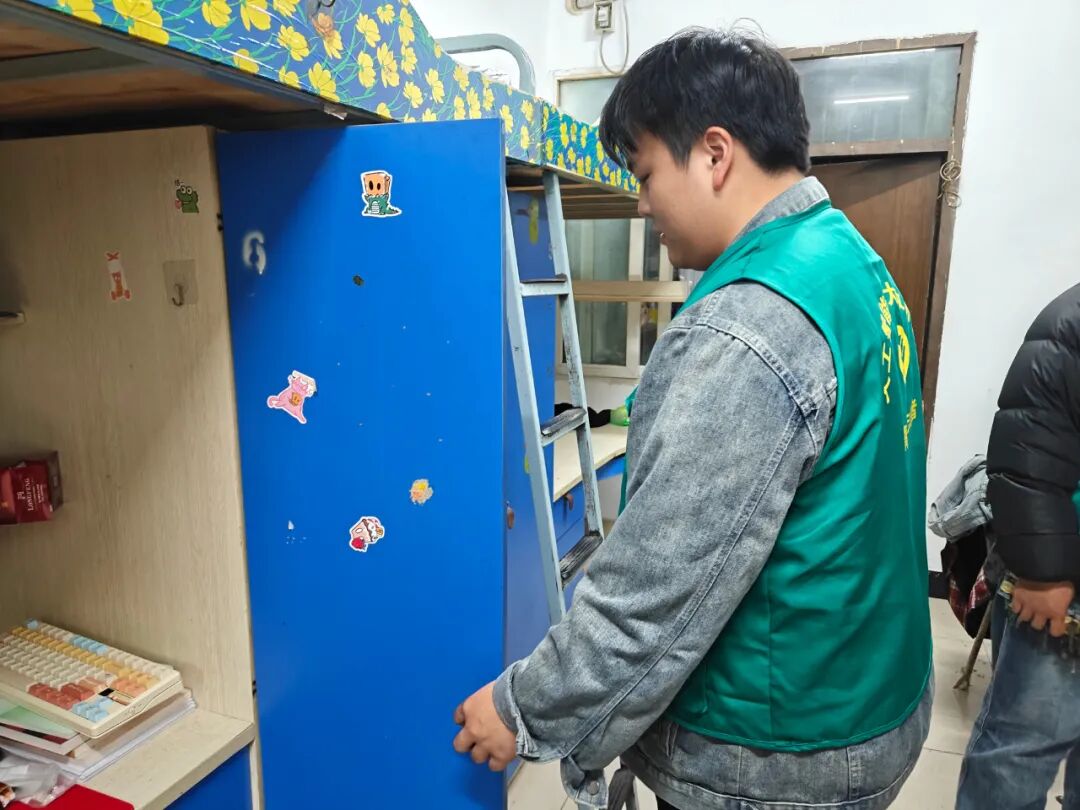 本次检查严格遵循“安全第一、预防为主”的工作原则,由辅导员与学生志愿者共同组成检查小组,重点围绕用电安全、消防设施、环境卫生三大方面开展细致排查。在安全检查环节,工作人员重点排查私拉乱接电线、违规使用大功率电器等安全隐患,仔细检查消防设施完好情况与消防通道畅通情况,坚决防范各类安全风险。在卫生检查环节,检查组对宿舍内务整理、物品摆放、环境卫生等进行全面查看,现场提出优化建议与整改要求,做到发现问题、现场指导、限期整改。