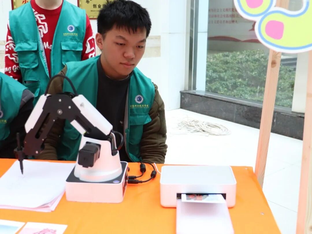 活动集中展示了智能交互、数据处理、算法演示等多项AI与大数据核心应用成果,师生近距离观摩体验、互动交流,在实践中深刻感受前沿科技的独特魅力,进一步夯实专业认知、拓宽科技视野。其中,AI智能影像打印体验项目成为现场亮点,同学们依托智能算法生成专属创意影像并现场打印,在趣味互动中直观感受人工智能的实用价值与创新活力。