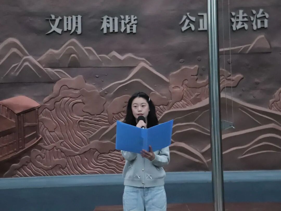 升旗仪式后,物联网 ZK2501 班学生曹侯宁作国旗下发言。她结合红色历史与专业学习分享感悟,号召同学们铭记革命先辈精神,将爱国情、强国志、报国行融入日常学习,以实干笃行践行青春使命,用专业所长践行科技报国初心。