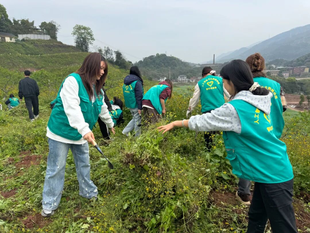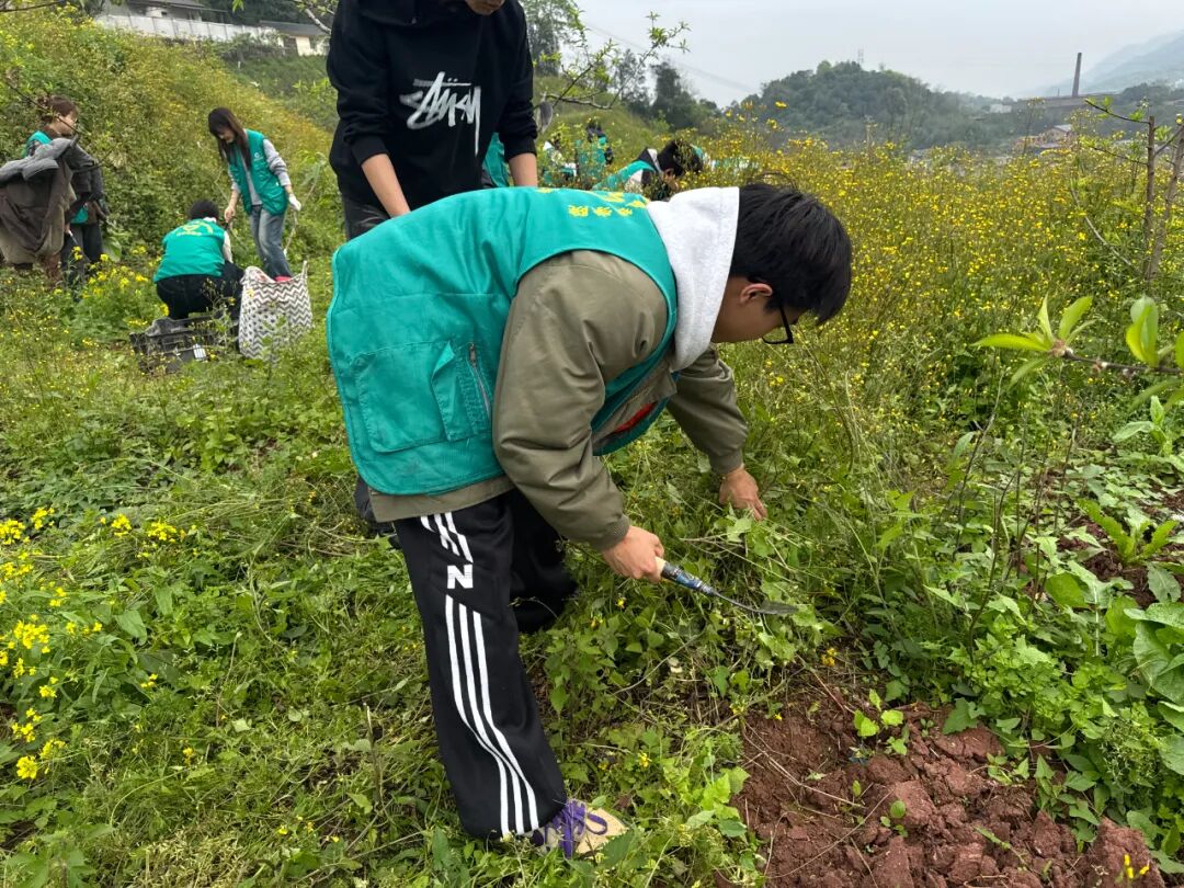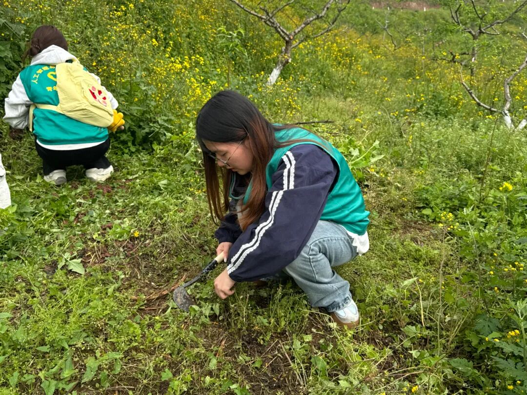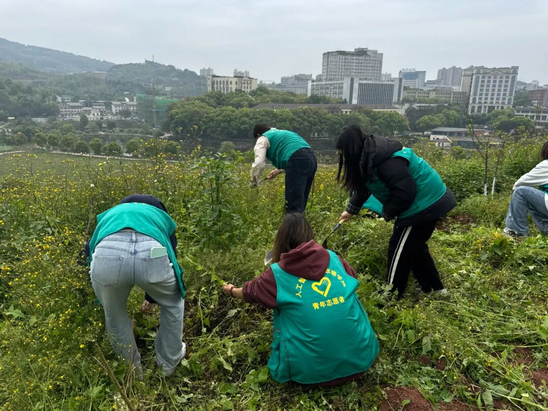 在花果山片区,大家分工协作、密切配合,手持工具认真清理杂草枯枝与各类垃圾,细致清扫卫生死角,以实际行动为植被减负、为校园添绿,用劳动守护绿水青山,践行生态文明理念。