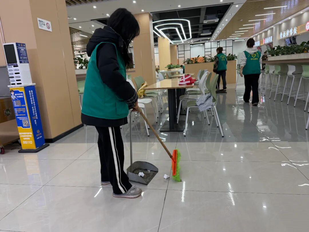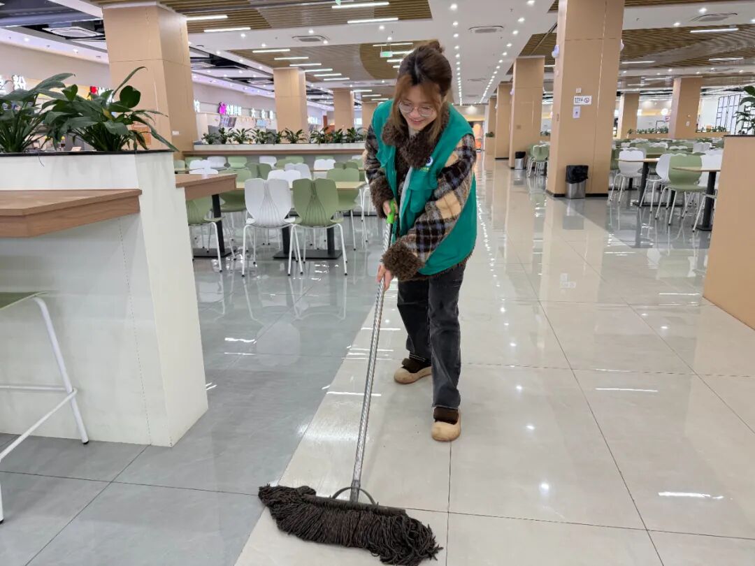 嘉禾汇片区同步开展环境整治。同学们对公共区域地面、墙面进行全面清扫与擦拭,精细化提升环境卫生,共同营造整洁、文明、舒心的校园公共空间。大家精神饱满、干劲十足,充分展现出吃苦耐劳、实干担当的优良风貌,以点滴行动诠释新时代雷锋精神的深刻内涵。